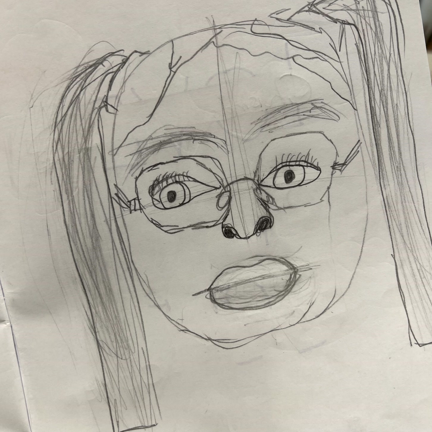 Mit Hilfe eines Handspiegels wird das eigene Gesicht und die verschiedenen Formen von Kopf, Augen, Nase und Mund genau betrachtet. Dabei sollen die Schülerinnen und Schüler besonders auf charakteristische Merkmale achten. Mit Bleistift wird eine erste Skizze des Gesichts erstellt.