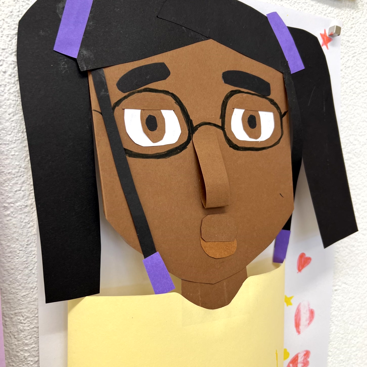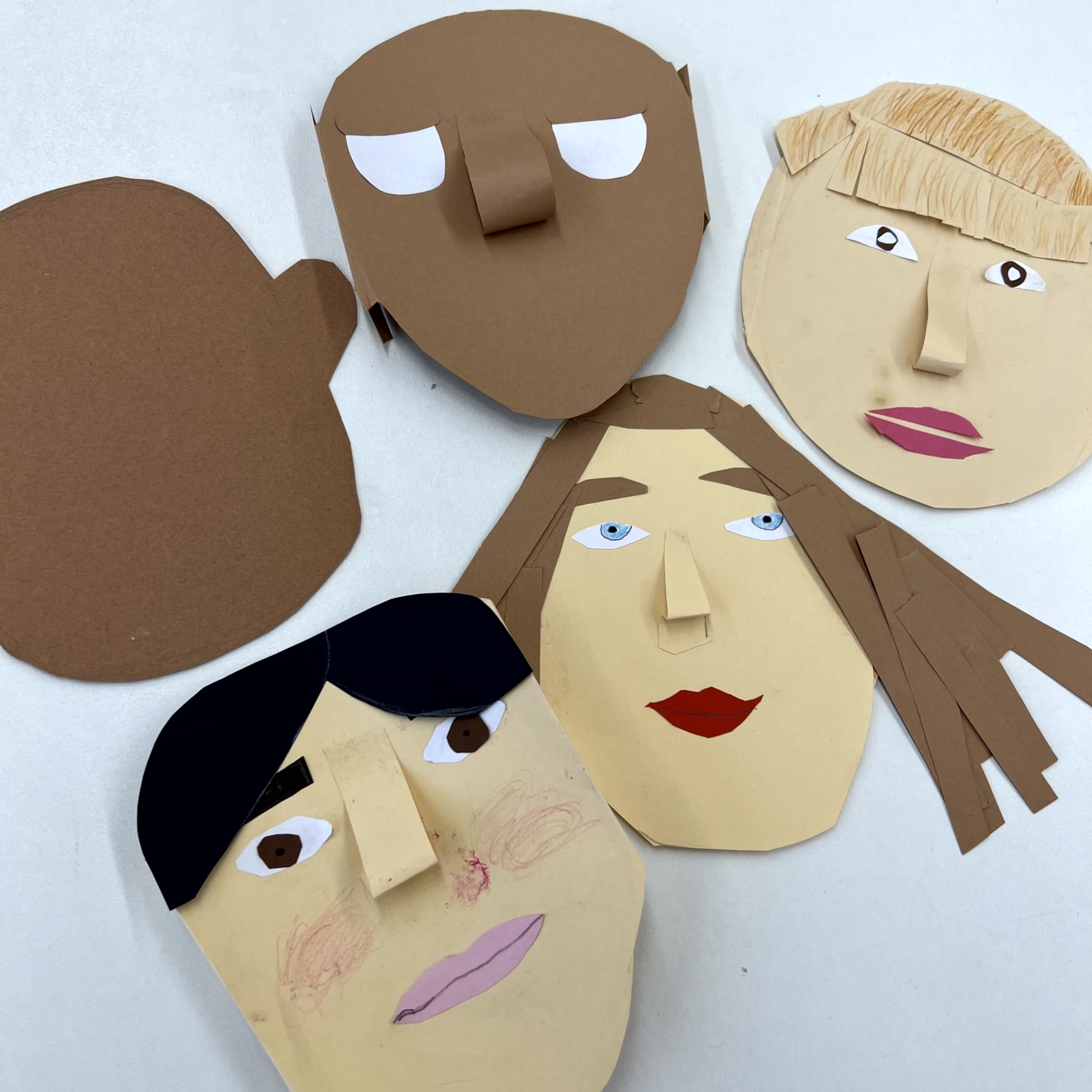 Die Ideen aus dem Prototyp werden nun auf buntes Tonzeichenpapier übertragen. Gesichtsteile wie Augen, Mund, Nase und Haare werden sorgfältig aufgezeichnet, ausgeschnitten und auf die Gesichtsform aufgeklebt. Um die Vielfalt der Hauttöne realistisch abzubilden, sollten viele verschiedene Papiertöne angeboten werden.