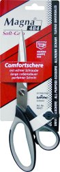 Dank der ergonomisch geformten, schlagfesten Kunststoffgriffe liegt die Schere angenehm und sicher in der Hand. Der Weichkunststoff im Griffbereich sorgt für zusätzlichen Schneidekomfort — auch bei längeren Arbeitseinheiten. Die echte Schraubverbindung gewährleistet eine langlebige, stabile Nutzung.