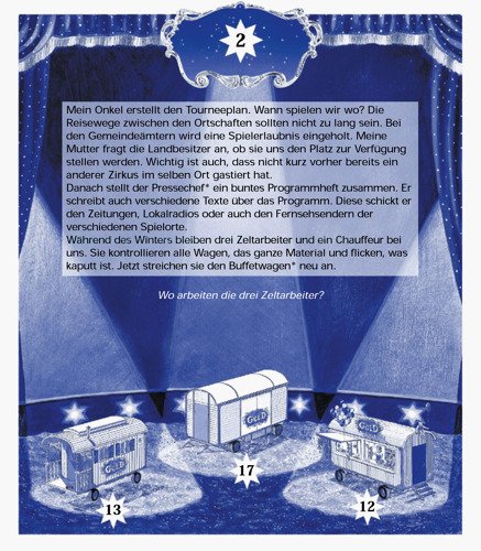 Man lernt das Leben im Zirkus kennen: Das Saisonprogramm wird zusammengestellt, ein Plakat ausgewählt, die Zirkuswagen werden zum Spielort gefahren, das Zelt wird aufgebaut, die mit Spannung erwartete Premiere beginnt.