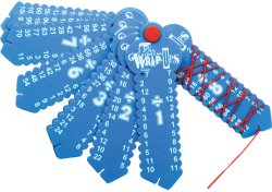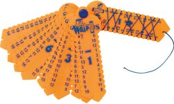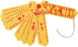 Die Rechenfächer für Plus, Minus, Multiplikation und Division ermöglichen Kindern, die vier Grundrechenarten spielerisch zu üben und ihre Ergebnisse selbstständig zu kontrollieren. Die Aufgaben werden von links nach rechts bearbeitet: In der Mitte steht der jeweilige Rechenschritt, rechts sind verschiedene Lösungszahlen angegeben. Wird das Ergebnis gewählt, wird die Schnur in die entsprechende Kerbe eingefädelt und auf der Rückseite zur nächsten Aufgabe geführt. Dort zeigen diagonale Linien, ob der Lösungsweg korrekt war, sodass eine einfache Selbstkontrolle möglich ist. Jeder Rechenfächer besteht aus zehn Tafeln und unterstützt das eigenständige Lernen sowie das Verständnis für mathematische Zusammenhänge. Die Rechenfächer sind aus robustem Kunststoff gefertigt, handlich im Format von 5 x 15 cm und etwa 2,5 cm stark. Geeignet für Kinder ab 3 Jahren.