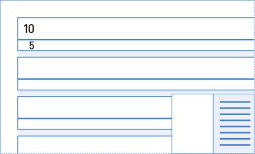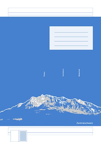 Rechte Seite: 2 Gassen-Schreibliniensystem (10/5 mm), Schreiblinie verstärkt. Zwischenräume farbig, Rand weiss. Linke Seite: blanko.