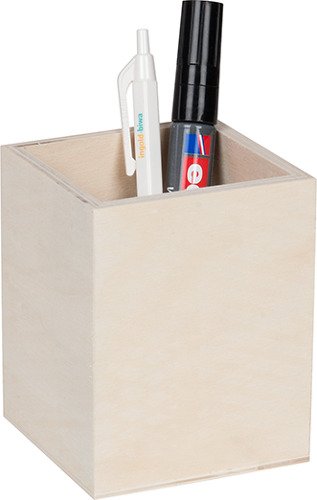 Viereckiger Stiftehalter aus hellem Holz, zum Bemalen oder Verzieren.