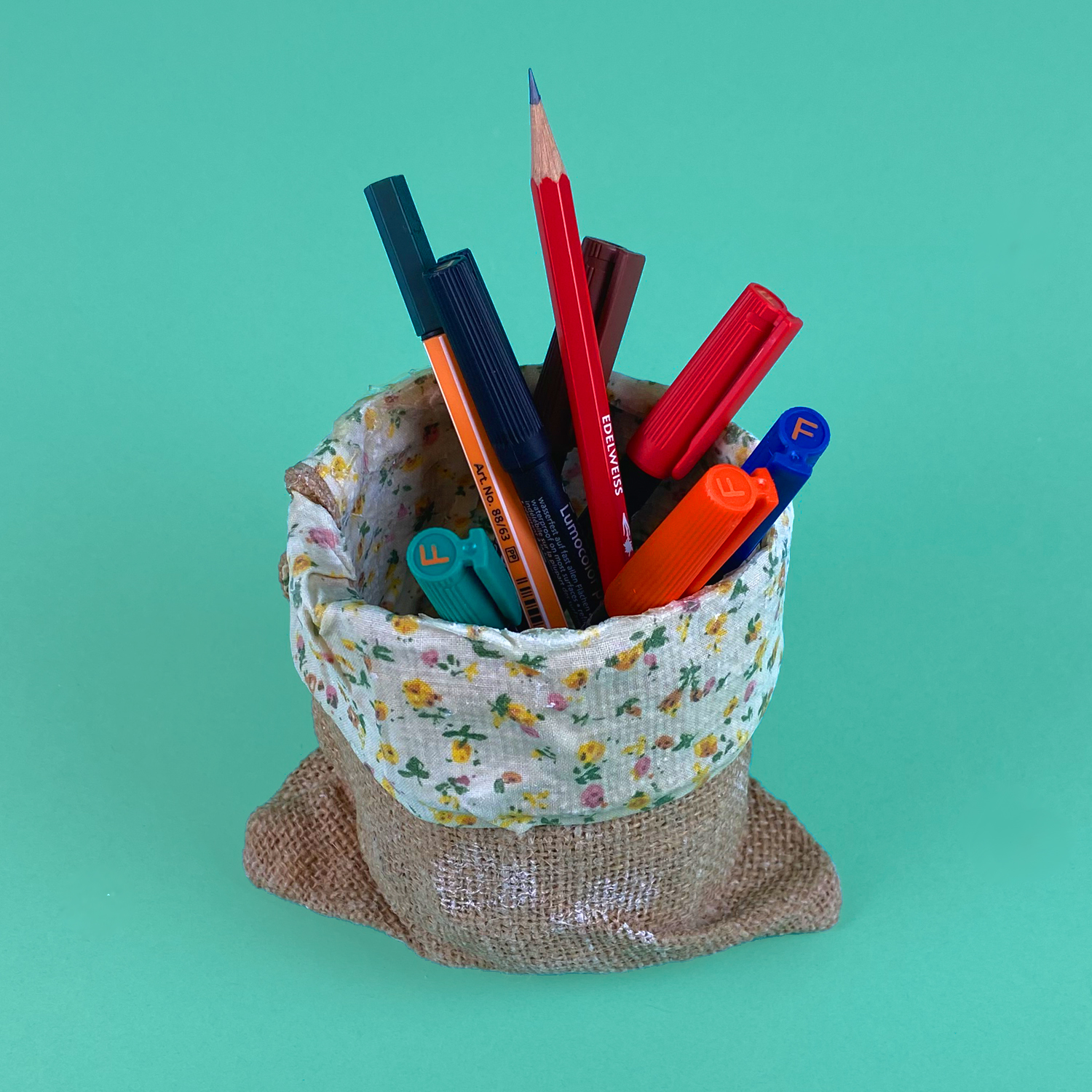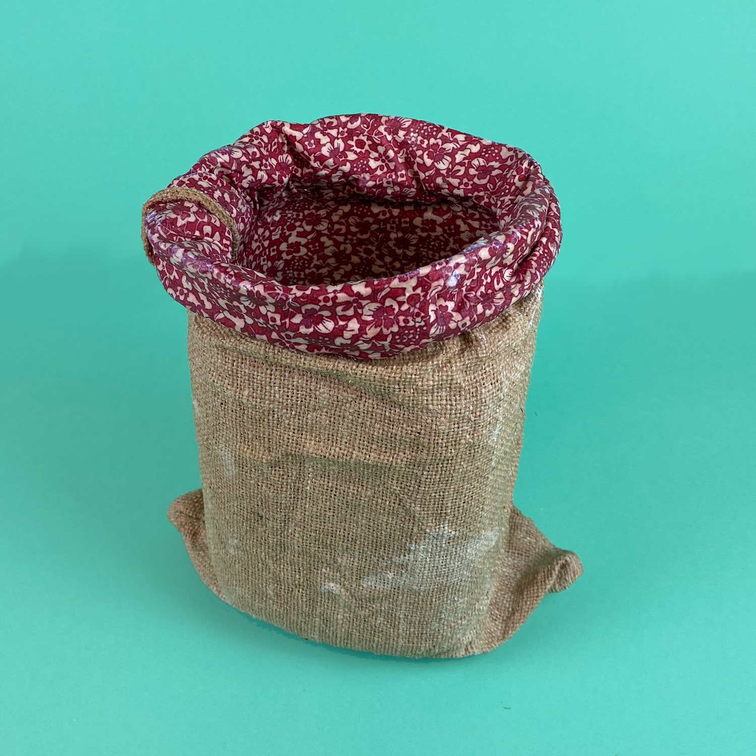 Aus Jute- und Baumwollstoff werden zwei Stücke mit den Massen 30 x 24 cm zugeschnitten.