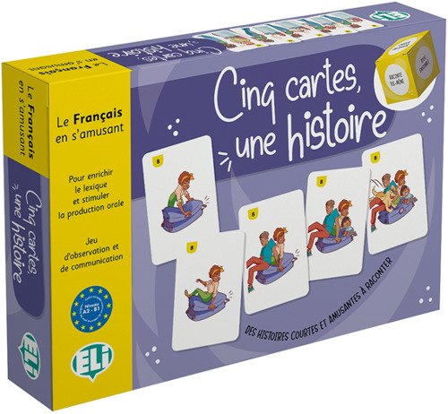 Cinq cartes, une historie est un jeu de cartes conçu pour étudiants ayant une compétence linguistique de haut niveau A2-B1 (CECR). Ses 40 histoires racontent des épisodes de la vie quotidienne qui peut être achetée et racontée étudiants adolescents et adultes (décrire la personne, objets, lieux, expériences, sentiments).