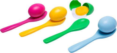 Le classique dans des couleurs fraîches ! Les joueurs se tiennent prêts, chacun avec un œuf sur une cuillère en plastique. Au signal, les enfants courent le plus vite possible vers l'objectif. Celui qui perd son œuf en route doit retourner à la ligne de départ et peut faire une nouvelle tentative. Le premier ou la première à atteindre l'arrivée sans perdre son œuf gagne la partie. Le jeu « Egg Party » entraîne de manière ludique la coordination, la concentration et l'habileté et stimule l'esprit d'équipe de votre classe.