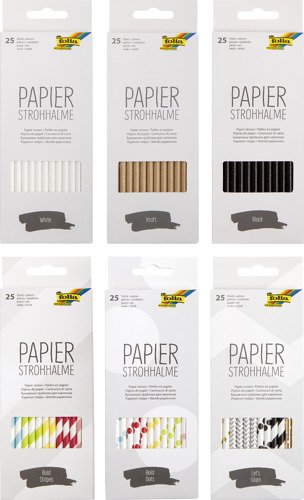 folia pailles à boire en papier, blanc uni, 25 pcs
