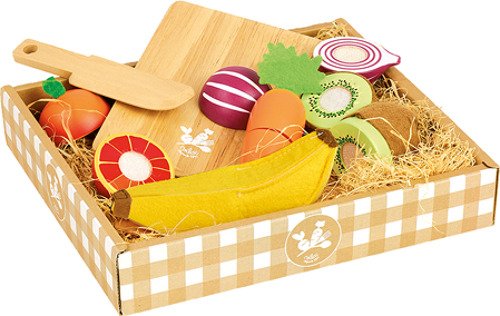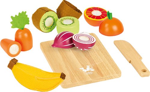 Set de fruits et légumes en bois, y compris couteau et planche à découper
