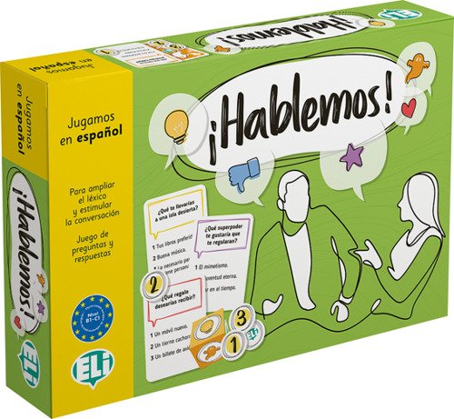 Para ampliar el léxico y estimular la conversación. ¡Hablemos! es un entretenido juego para enriquecer el léxico y estimular la conversación. El objetivo es mejorar las destrezas de expresión e interacción oral y fomentar la socialización entre los participantes. Las preguntas y respuestas han sido estudiadas para crear un ambiente dinámico, entretenido y distendido, en el que el aprendizaje tenga lugar de manera natural y espontánea.