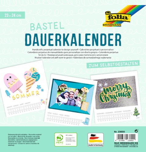 folia calendrier permanent 23x24cm avec reliure à spirale, 130g/m², blanc