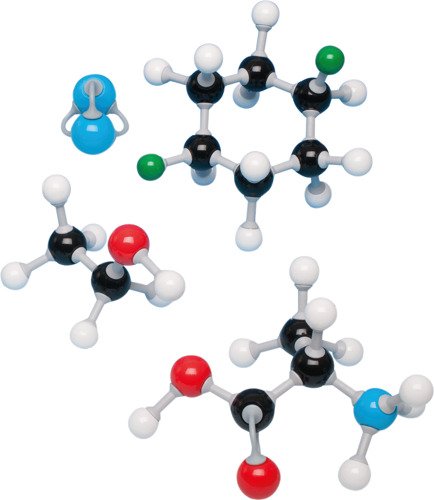 Le kit de construction moléculaire de 48 pièces est un système de haute qualité pour la construction de molécules. Le kit contient différents atomes et composés permettant de créer un grand nombre de structures différentes issues de la chimie organique.