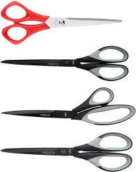 Ciseaux universels En acier inoxidable, poli. Lames très tranchantes, coupes faciles, vis de fixation et dotés de poignées en plastique avec des grips en caou...