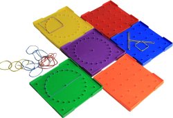 Géoplan à deux faces jaunes Sur une des faces, 5 x 5 pointes sont agencées en carré et, sur l’autre, 24 pointes sont disposées en cercle, plus 1 dans chaque coin. Les ...